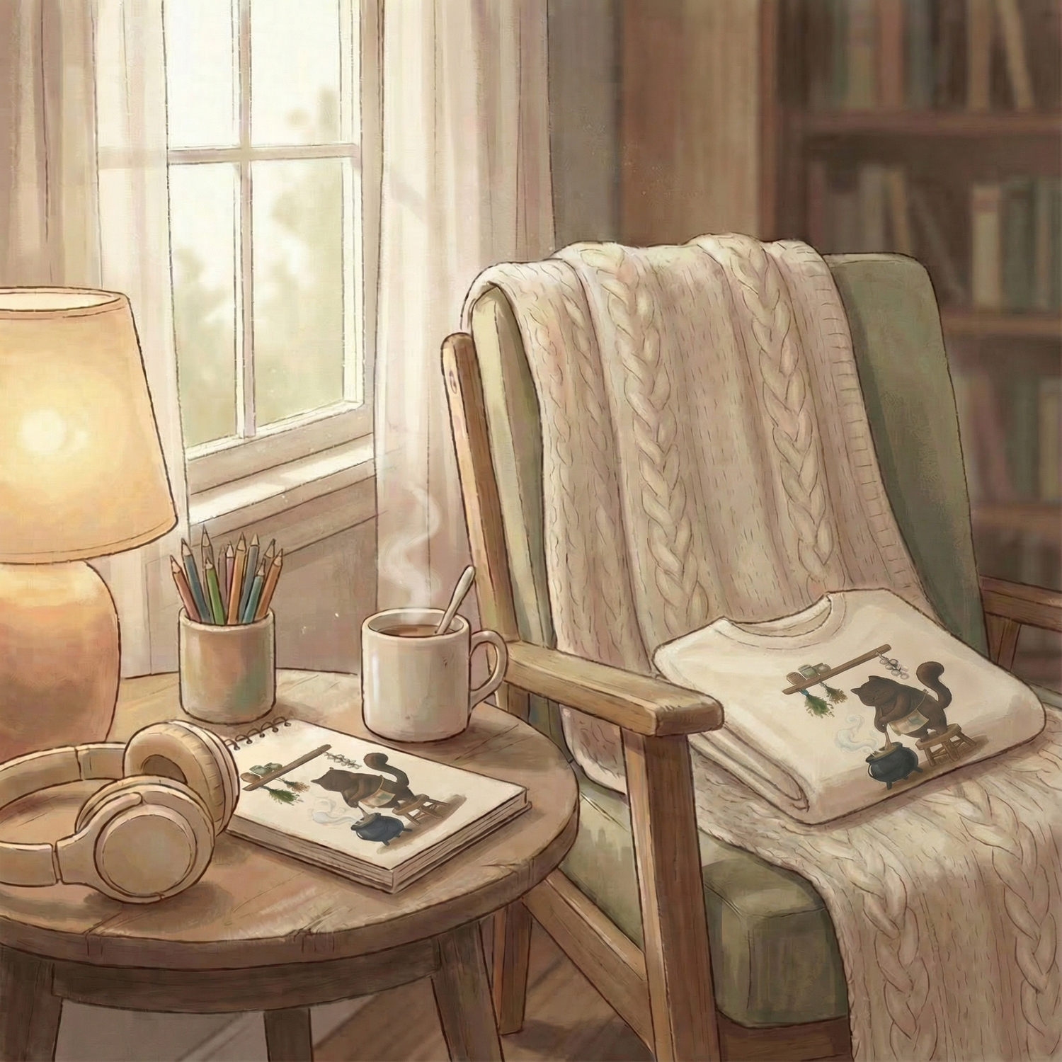 We create soft, storybook-inspired pieces that feel comforting, nostalgic, and human — designs meant to slow you down, not compete for attention.
